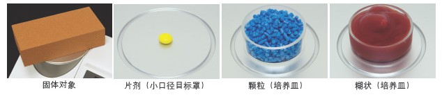 固体样品可以简单地放置于测量口上;糊状或颗粒状样品可放置于培养皿中。